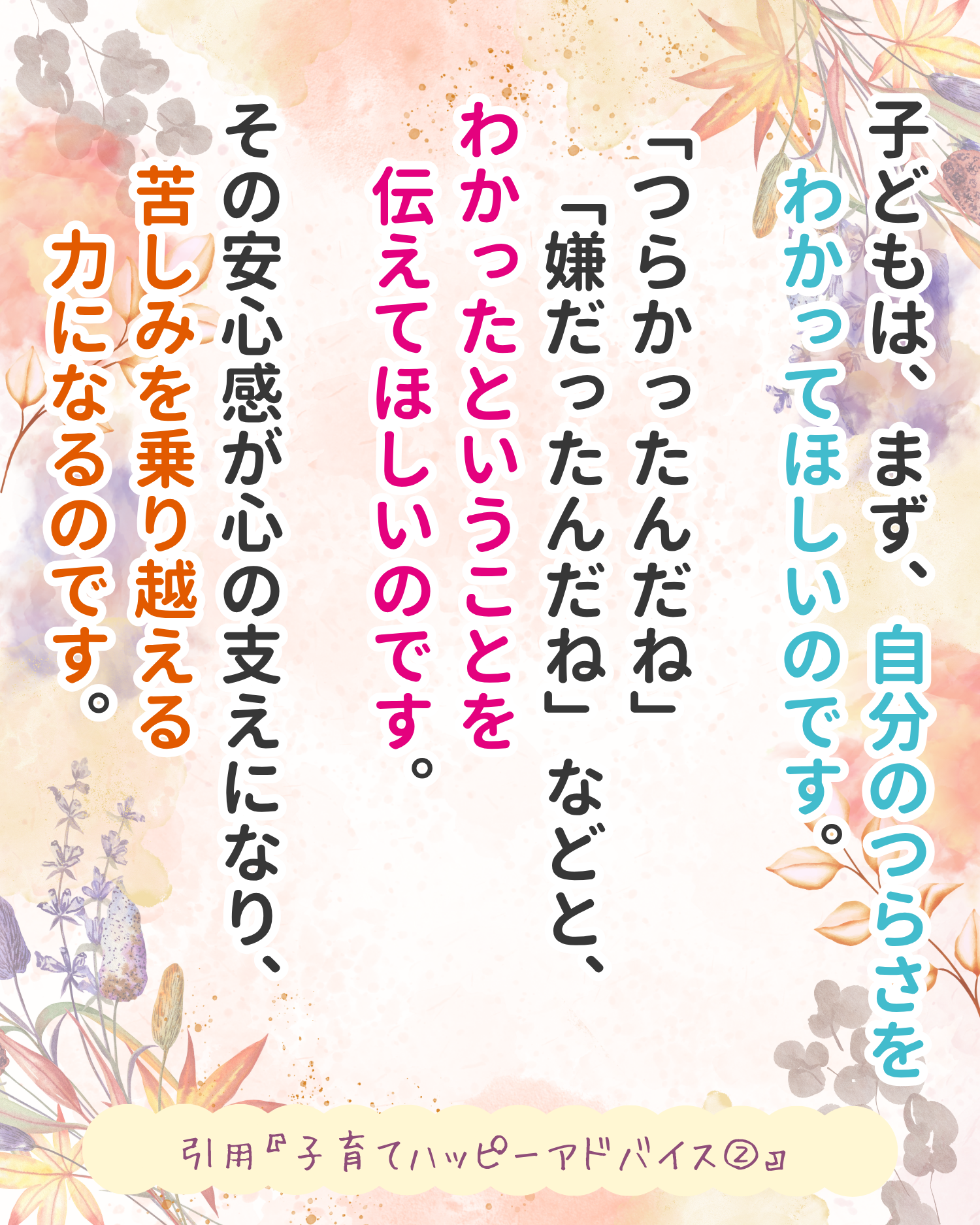 こちらの「子育てハッピーメッセージ」は、『子育てハッピーアドバイス2』の中に収録されています🤍